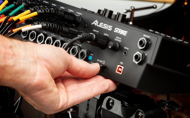 The Strike Pro Module is by far the most versatile and capable module that Alesis has ever offered. A large measure of the amazing playability and character of this kit is due to the expansive sound library with over 136 custom kits made from over 1800 instruments and 45,000 samples. The module has onboard sampling capability, 16GB external card storage, and USB/MIDI connectivity, which you can use in conjunction with your favorite music production software as well as the powerful Strike Software Editor. With this editor players can assemble their own custom samples into multiple velocity layer and round-robin instruments, piece together the perfect drum kit, and then transfer it onto the module via USB. Every feature and control is incredibly easy to keep track of, thanks to the Strike Pro Module’s 4.3-inch color LED screen, which displays all the player’s settings and choices at a quick glance. It adds up to unprecedented flexibility and programmability, combined with total mastery of the kit’s status.
