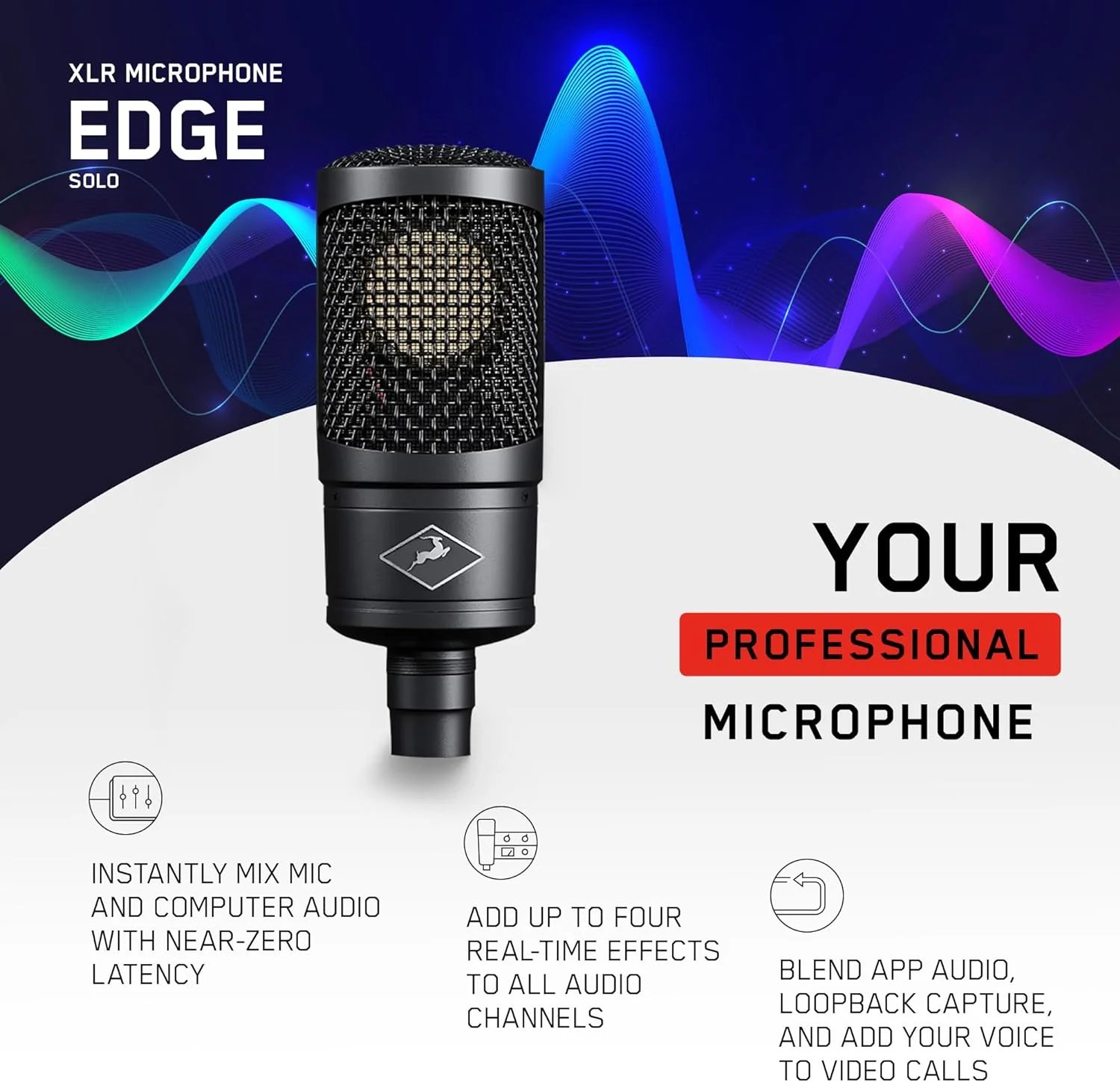 The Edge Solo is a versatile and easy to use condenser microphone that brings our unwavering commitment to high-resolution sound to your home studio and builds upon it with the tone-shaping abilities of 18 recording legends. The unique balance of heritage and technical innovation embodies the essence of the Edge Solo, making it the premier choice for your vocals and acoustic instruments.