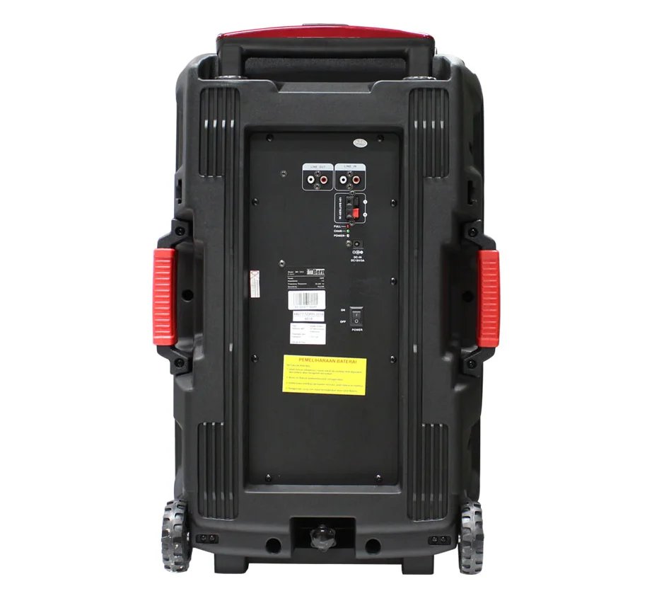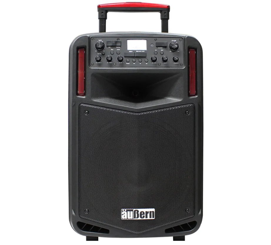 Portable Amplifier Wireless Aubern BE12CX Ini sudah di lengkapi dengan Bluetooth, USB dan 2 Mic wireless (Handheld dan Clip On), Selain itu Portable Amplifier Wireless ini sudah include dengan Battery. Sehingga bisa di gunakan tanpa menggunakan tegangan listrik.Jarak microphone wireless ini sendiri sekitar 30M. Aubern BE12CX ini dilengkapi dengan roda dibagian bawahnya, yang membuat penggunaan mobile semakin mudah.