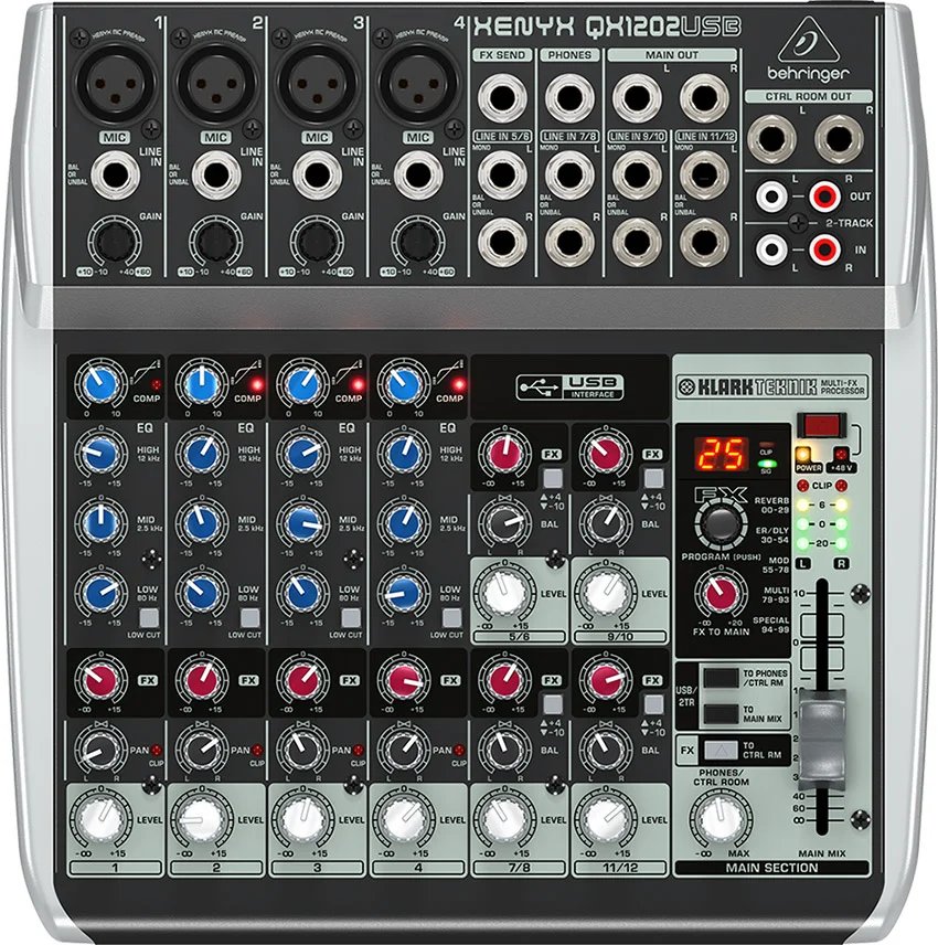 The compact QX1202USB mixer allows you to effortlessly achieve premium-quality sound, thanks to its 4 onboard studio-grade XENYX Mic Preamps and ultra-musical “British” channel EQs. And our easy-to-use “one-knob” compressors provide total dynamic control for the ultimate in punch and clarity, while respecting all the power and emotion you pack into every note. Add to this, the sweet forgiveness of our British-style EQs and a KLARK TEKNIKM 24-bit, dual engine FX processor with 100 presets including reverb, chorus, flanger, delay, pitch shifter and various multi-effects – and the QX1202USB becomes an incredibly versatile mixer for your live performances.