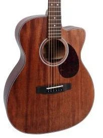A solid, all-mahogany body with a natural, open-pore finish and orchestra model (OM) cutaway design. The dark, open-pore finish of the AS-OC4 ensures that this guitar will age as desired—unlike a laminated guitar—allowing the wood choice to resonate naturally. In terms of tonal quality, players will find that the AS-OC4’s mahogany provides balanced dynamics, with ample bottom-end response that doesn’t inhibit the top-end. Smaller than a Dreadnought, the AS-OC4 certainly doesn’t lack in volume and has the ability to accommodate a variety of acoustic styles. The OM body features the soft, rounded lines of the Venetian cutaway, allowing the player to get more from the highest of the 20 frets. The quality of this design is reinforced by Cort’s advanced scalloped x-bracing and dovetail neck joint.