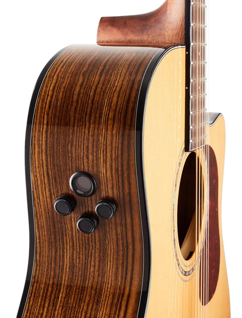Best known for its majestic wood grain patterns, the exotic Bocote comes from the same family as Ziricote and is found in the similar region (Central America to Northern Amazon). Tonally speaking, Bocote is more similar to rosewood and has warm, deep bass, broad spectrum of mids, and plenty of good volume with long sustain. Bocote is a perfect match for the premium grade solid Sitka spruce top found in our Gold Series, with a brilliant and clear high-end, warm and rich midrange, and a deep but tight low-end for a beautifully balanced combination of tones.