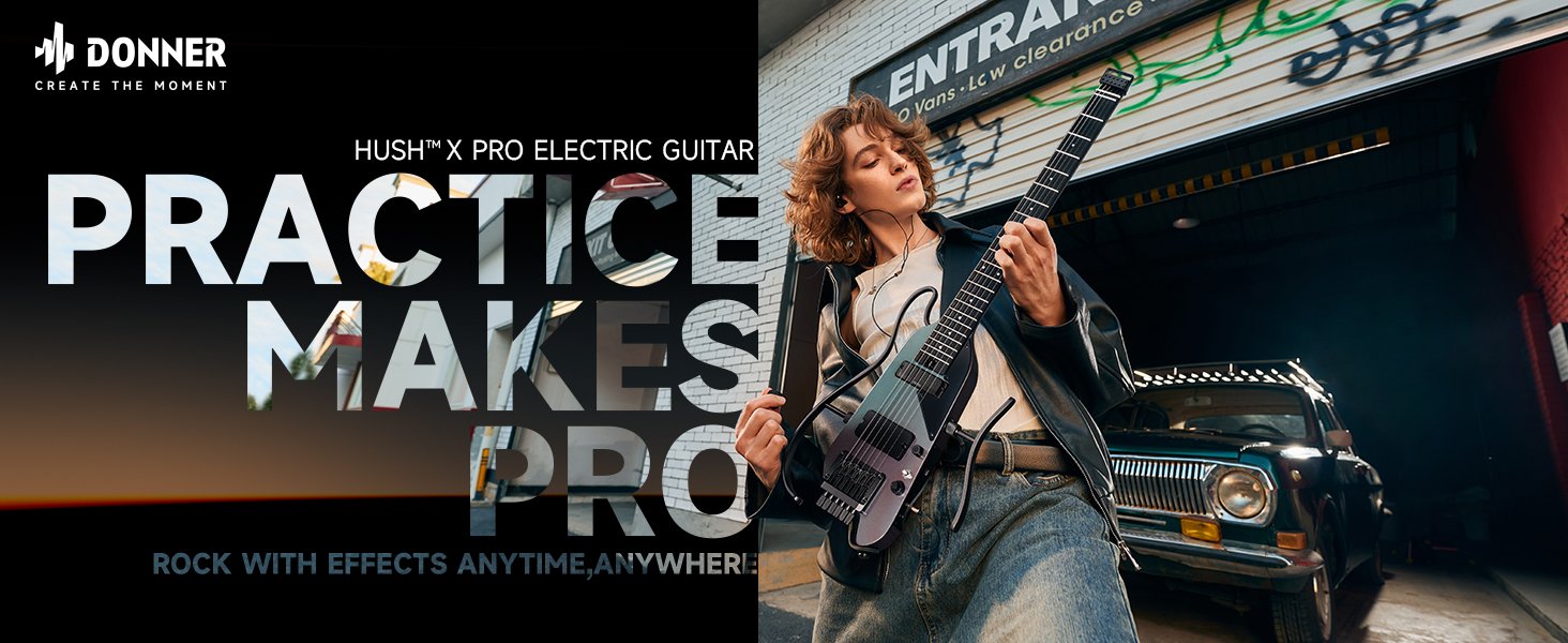 • Everything You Need Included – The HUSH X PRO electric guitar kit comes complete with a gig bag, headphones, charging cable, audio cable, guitar strap, and more—everything you need to kickstart your musical journey