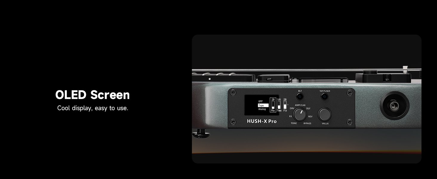 • Typical Effects Chain – The HUSH X PRO enables one-touch switching between dozens of tone combinations, including Overdrive, Amp, Reverb, Delay, Moduation, EQ , Noise Gate effects, among others. This greatly reduces reliance on additional equipment, making every practice and performance stress-free. Equipped with Alnico V pickups, it faithfully reproduces both classic and modern rock/pop tones, covering nearly any playing style or musical genre and inspiring limitless creativity