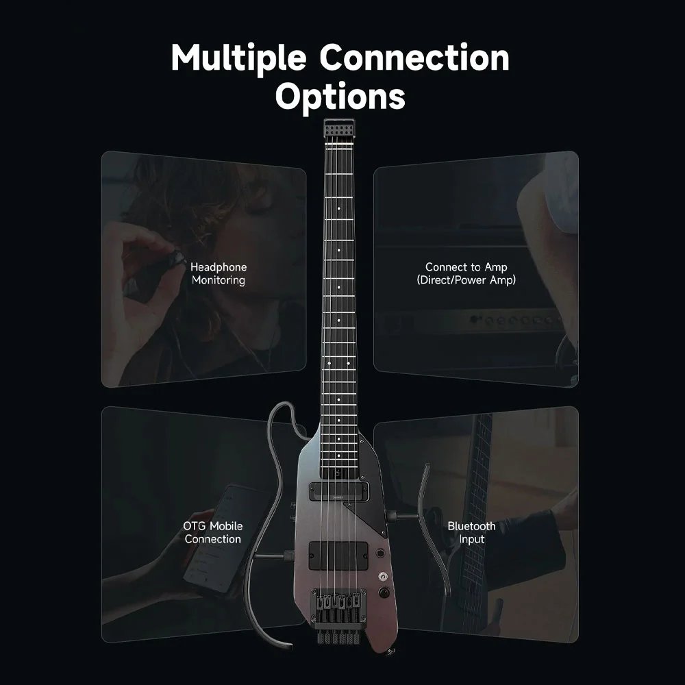 • Ultra-light and Portable Design – Building on its portable headless design and upgraded built-in tuner, the HUSH X PRO weighs only 5.5 lbs and is half the size of a traditional guitarra electrica. With up to 6 hours of battery life and a USB-C fast-charging port, it’s perfect for travel, performances, and practice