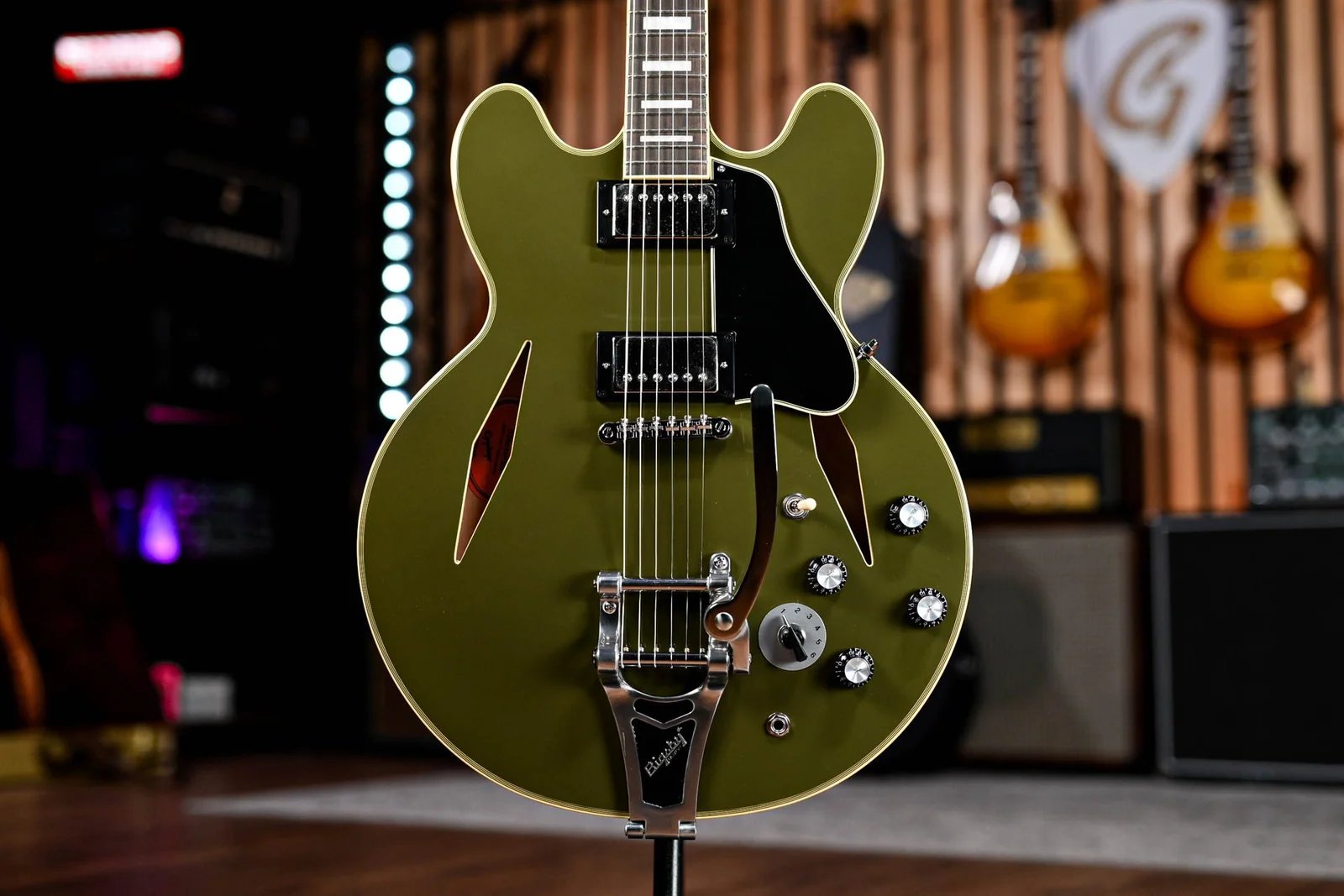 Epiphone ES 335 Bigsby Semi Hollow Electric Guitar with Premium Gig Bag, Olive Drab
