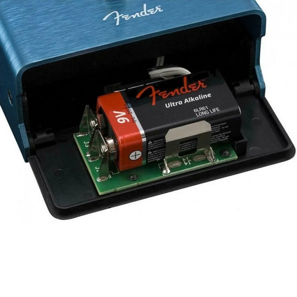 There’s a dotted-eighth function for creating dreamy washes of sound, and the delay tails continue when you bypass the pedal for a natural-sounding decay. Switching out the Mirror Image Delay’s battery is a breeze, via its patent-applied-for magnetically latched battery door. An amp jewel LED provides a classic Fender look, while LED-backlit knobs are easy to see on a dark stage. The Mirror Image Delay is housed in durable yet lightweight anodized aluminum.