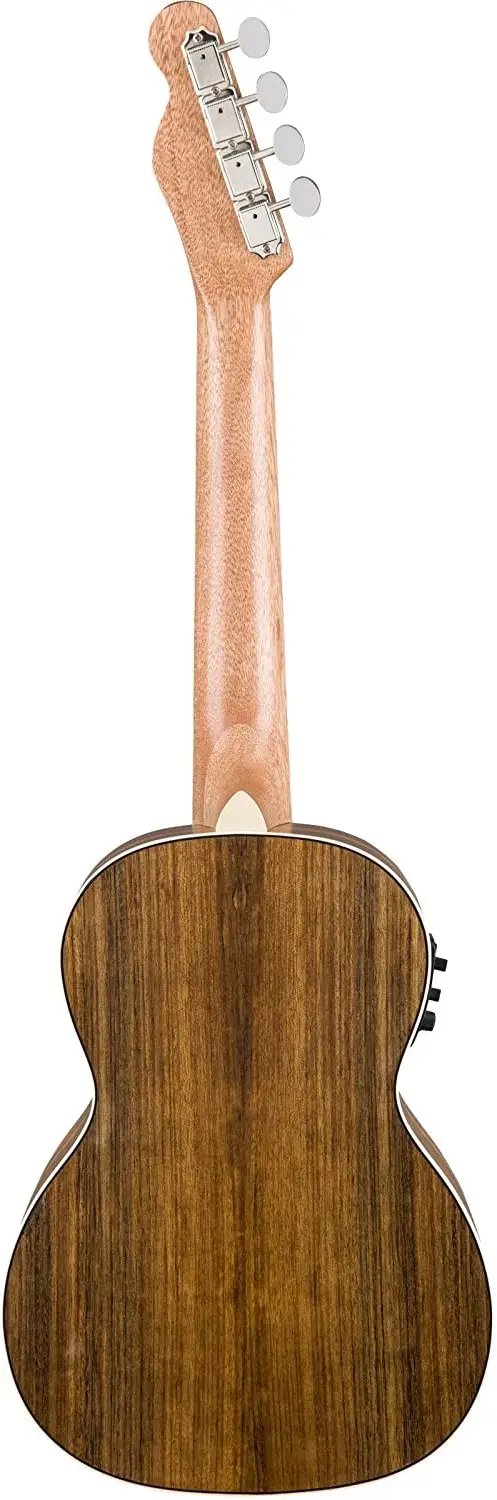 Crafted from ovangkol, with a solid top for enhanced volume, this ukulele sings with full-bodied chime while boasting a natural appearance. A pull-through bridge, bone nut and saddle, and eye-catching abalone rosette round out the modern features. The Rincon V2 now features a 4-in-line Tele headstock with vintage-style closed-back tuning machines, for that unmistakably classic Fender look.