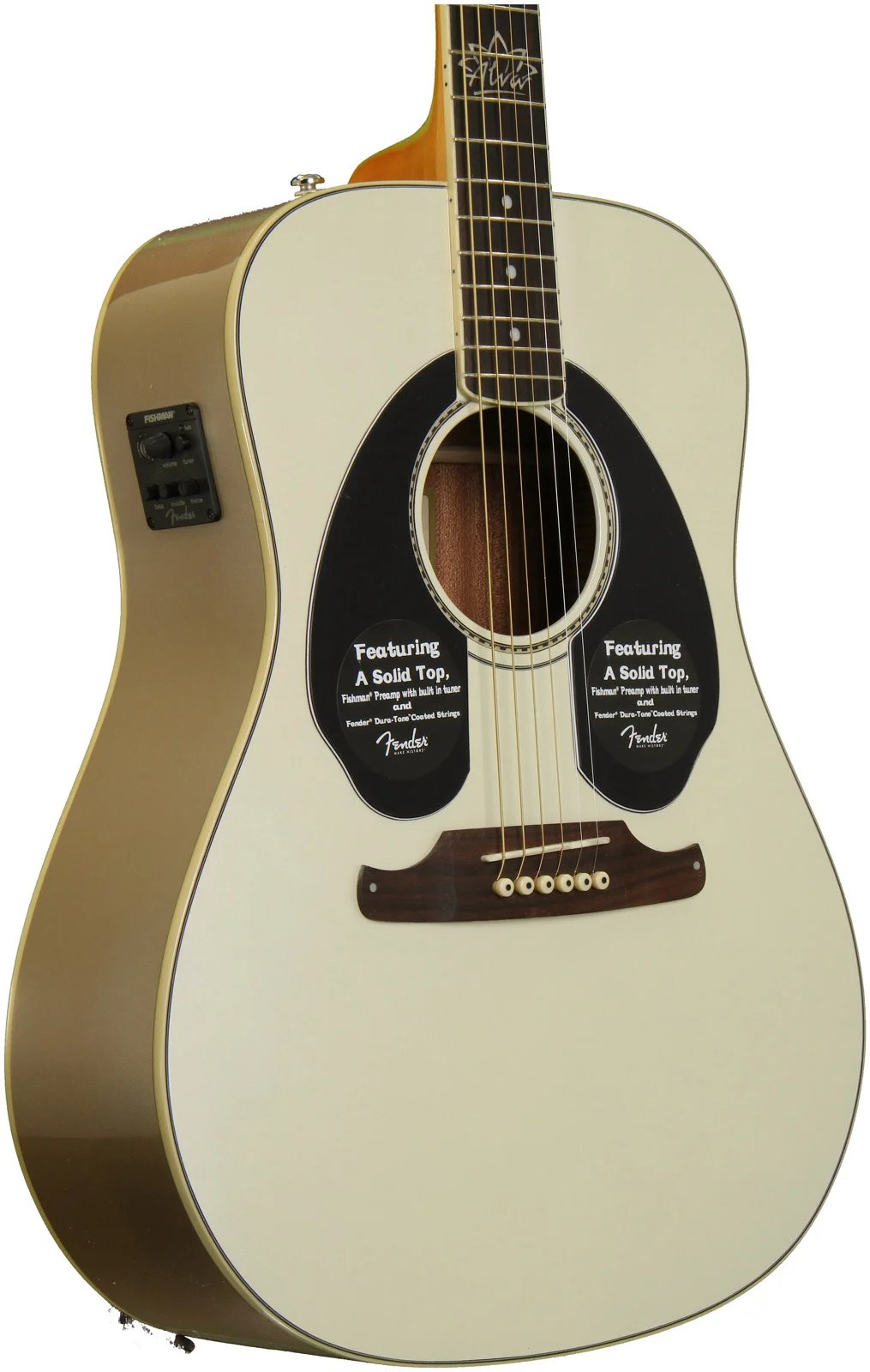 Other features include quartersawn scalloped “X” bracing, checkerboard rosette and aged white neck and body binding, gloss-finish maple neck with “C”-shaped profile and dual-action truss rod, Stratocaster guitar headstock, 20-fret rosewood fingerboard with 11.81” radius, rosewood bridge with compensated bone saddle, and vintage-style all-metal tuners. Case sold separately.