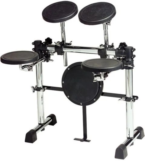 The Gibraltar GP08 Powerrack Pad Outfit Includes a 20″ horizontal bar, two 20″ vertical bars with T-Leg assemblies, four GPRMC MultiClamps, four 8″ rubber practice pads with mounting arms, two GPRTC, and one GBDP bass drum pad.