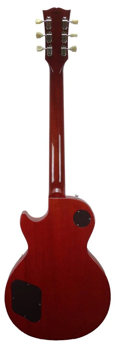 Classic Les Paul tonewoods include a gold-colored maple top and a non-standard cherry-colored mahogany body