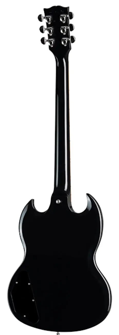 The Gibson SG Standard rocks the classic looks and features associated with the late 60’s style SG models sought after by many. A rounded profile mahogany neck, bound rosewood fingerboard, long tenon 19th fret neck joint, and a solid mahogany body provide the backbone for singing sustain. The 490R and 490T Alnico II pickups provide the power to drive. A black, 5-ply, full-face pickguard set this SG Standard apart from others… a truly versatile classic.