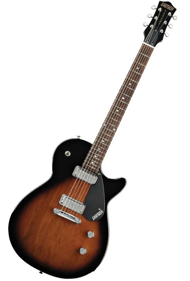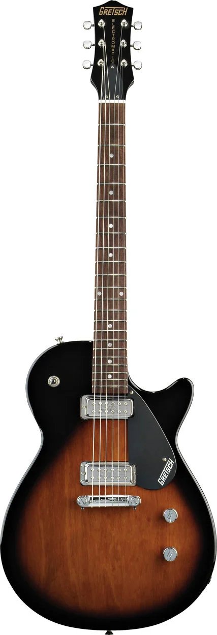The Junior Jet II is a straightforward rocker with impeccable vintage credentials. It features 2 TV Jones® Designed Gretsch mini-humbuckers, a mahogany bolt-on neck with rosewood fingerboard, a chrome plated wraparound bridge, one volume and one tone control, a 3-way pickup selector, and vintage-style die-cast tuners. You simply can’t go wrong.