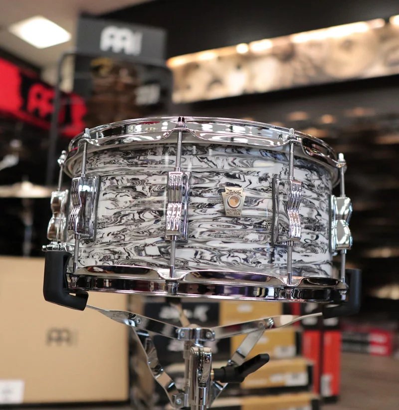The Ludwig Classic Maple limited-edition snare drum sports a gorgeous white abalone finish, adding flair to this already impressive drum. With its 7-ply maple shell and proprietary RFST molding process, the Classic Maple snare provides stellar tonal balance and resonance. The 45 degree bearing edges allow for a wide tuning range and maximum sustain. To top it off, the triple-flanged hoops and vintage snare wires deliver crisp, balanced articulation. This snare is built for discerning drummers who want both visual appeal and top-notch performance. This Ludwig snare is constructed with a 7-ply, 6 mm maple shell formulated to provide optimal resonance and tonality. The center core is sandwiched between inner and outer plies using Ludwig’s proprietary RFST molding technology. This ensures even curing across the entire drum for consistent sound and performance. The result is a snare with balanced tonality that blends nicely into any musical situation, from rock to jazz and beyond. The maple shell gives you a versatile drum that always delivers.