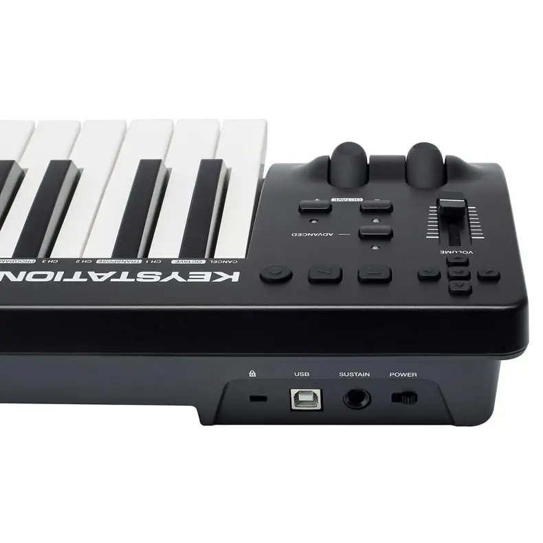 With its full-sized, semi-weighted keys and exciting instrument software bundle, the lightweight and expressive M-Audio Keystation 49 MK3 makes a worthy addition to any studio setup or performance arsenal. This simple USB controller comes equipped with a streamlined control set to quickly unlock the full power of your pianos, synths, loops, and sound machines. Mac/PC Class Compliancy and USB bus powering makes the Keystation 49 MK3 the ultimate plug-and-play solution for sound creation on the go. A standard 1/4″ sustain pedal input and on/off switch grace the back panel.