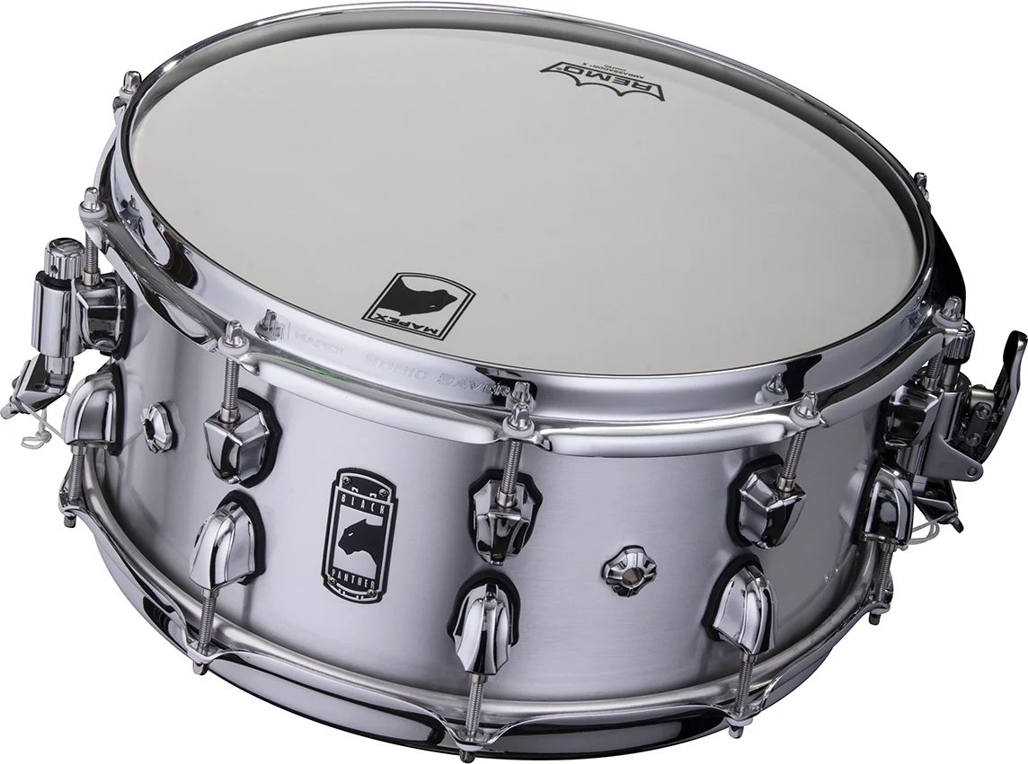 Dry and focused, crunchy and articulate, the all-aluminum Mapex Black Panther Atomizer Snare covers a ton of ground in a performance setting. Just like some of our favorite snares of all time, the Atomizer formula begins with a beaded shell of 2.0mm-thick aluminum – one of the most versatile shell materials ever discovered. Only in this case, the Atomizer’s shell is slightly undersized to allow full freedom of movement between the heads, hoops, and shell. This creates a dynamic response in the hands of unearths a wide swath of tones for any adventurous tuner or drum tech. The classic and timeless Aluminum sound captures every articulate nuance with a precise subtlety.
