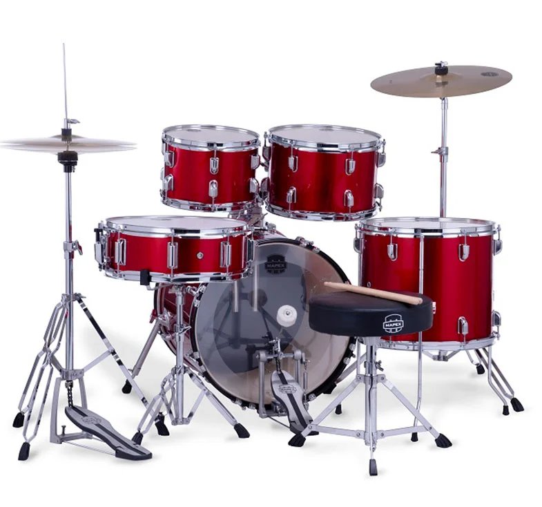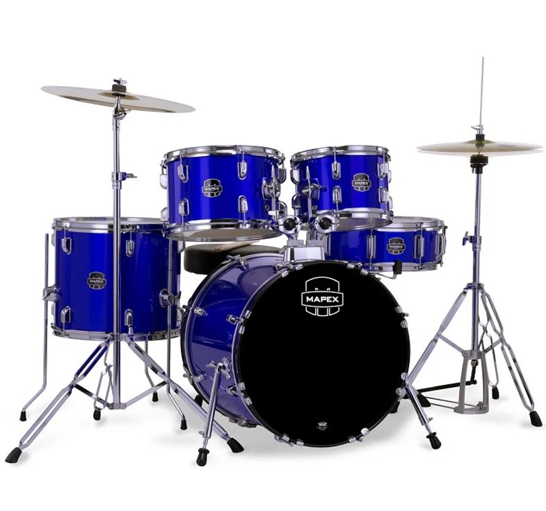 Introducing the Comet Series from Mapex: Transforming the beginner drumming experience with unmatched sound, resilience, and style. Tailored for the budding percussionist, it harmonizes top-notch quality and stellar performance, setting the perfect stage for kickstarting your musical journey. The Comet Series offers an inclusive range of complete drum kits engineered for anyone kickstarting the “Drummer For Life” journey. Configurations range from the junior kit to the rock kit all featuring SONIClear Bearing Edges for class-leading tone and no-nonsense tuning. The Mapex Comet 22″ Rock Fusion Starter Drum Kit available color : Indigo Blue, Dark Black & Infra Red features a 22″ Bass drum and 10″ 12″ and 16″ toms with a matching 14″ wood snare and is finished in a classic color.