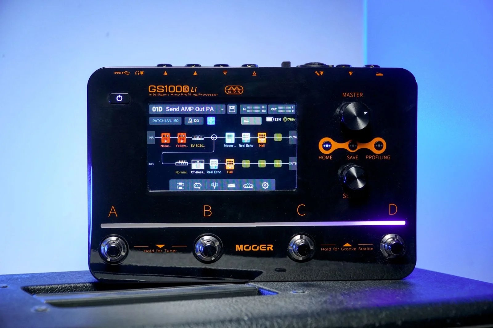 Introducing the GS1000 Intelligent Amp Profiling Processor, an augmented intelligent amp profiling processor. Built on MOOER’s advanced third-generation digital platform, the GS1000 Li introduces groundbreaking MNRS 2.0 technology, allowing guitarists around the world to emulate their favorite gear wirelessly for up to 6 hours with immense precision–specifically, for distortion pedals, preamps, amplifier heads, and cabinets. With this innovation, you can fully capture the essence of your favorite guitar gear without owning the physical hardware, letting you carry your favorite tones wherever you go. You can even use third-party IRs for cabinets of your choice, further enhancing the flexibility of this feature. With this innovation, guitarists can fully capture the essence of their favorite guitar gear without owning the physical hardware, enabling them to carry their favorite tones wherever they go. Users are even able to use third-party IRs for cabinets of their choice, further enhancing the flexibility of this feature.