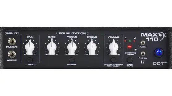 If you’re tired of lugging around heavy gear to small gigs and rehearsals try plugging into the MAX 110. Its 20W of power drive a heavy-duty, custom-designed, 10″ Peavey woofer to generate ample volume and punch.