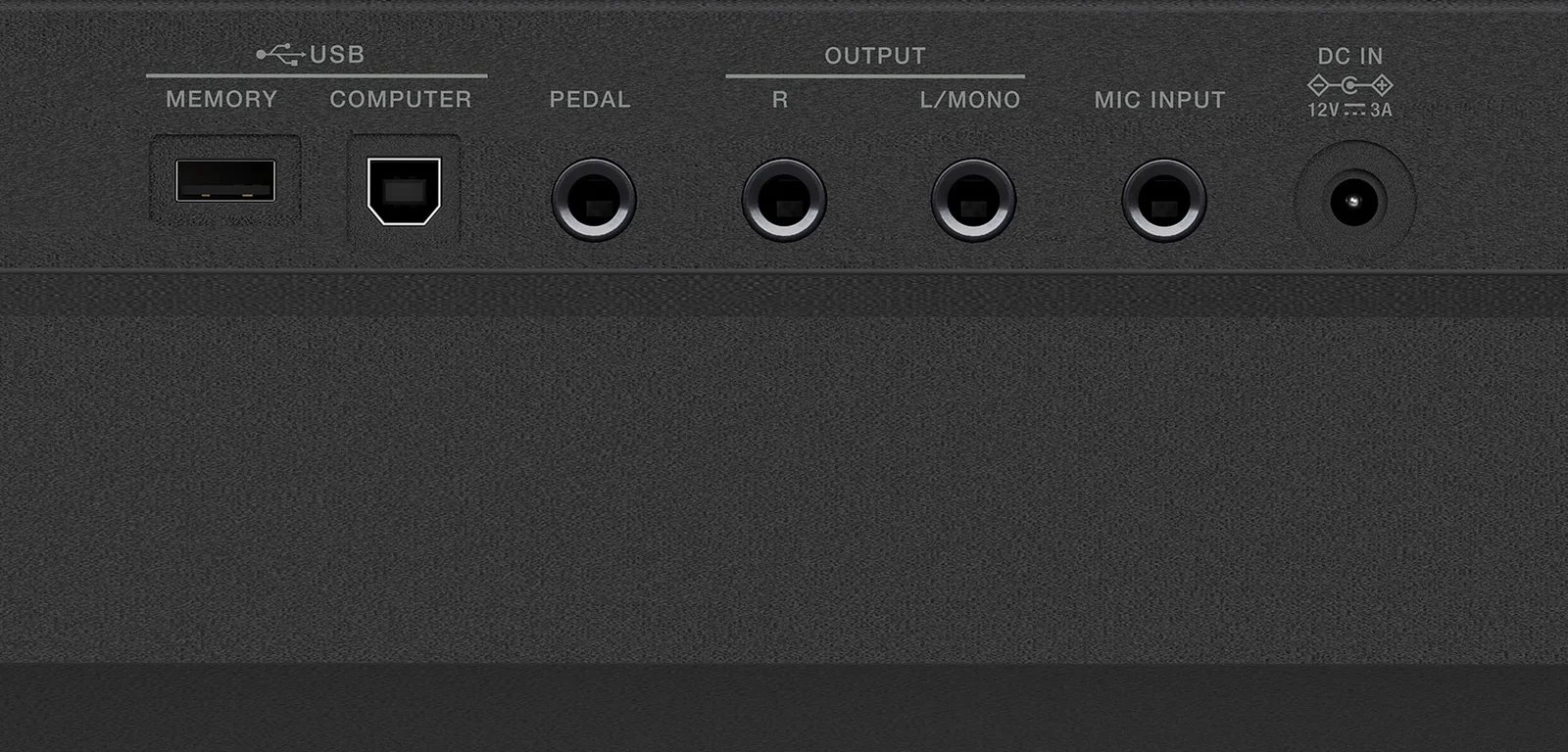The E-X50’s sophisticated auto-accompaniment features let you command a full band with your left hand as you play along with the right. Enjoy 300 preset styles, from rock, pop, and jazz to ballads, dance music, and traditional styles from different countries. Beginners will love Auto Bass Chord mode, which allows you to trigger chords and drive arrangements with one or two fingers. Whole mode is well-suited for advanced keyboardists, providing the ability to control arrangements even more deeply with full left-hand chords. Stream songs and lessons from your phone. It’s easy to extend your musical enjoyment by connecting a phone or tablet to the E-X50 via Bluetooth. Play along with songs from your streaming library through the onboard speakers, or learn some new techniques by working through the wealth of instructional videos on the web. Powerful connections.