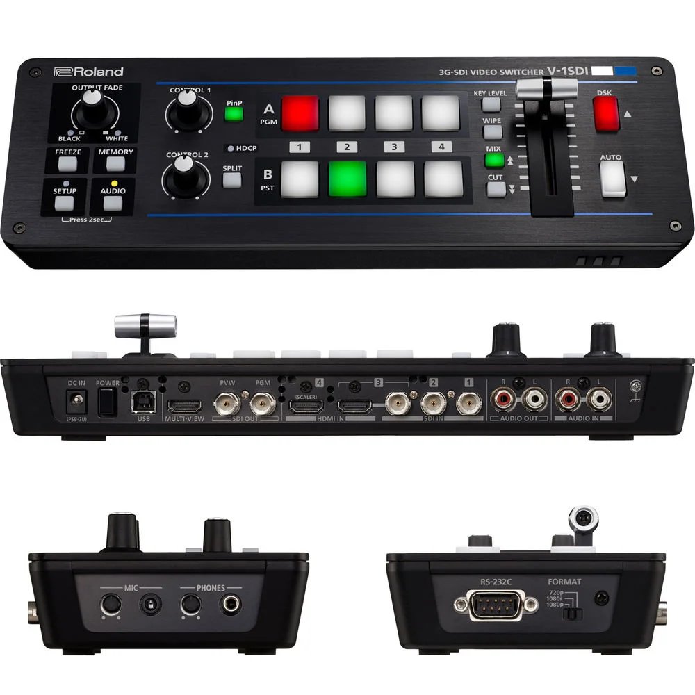 Roland’s V-1SDI 4-Channel HD Video Switcher supports HD-only video signals over three of its inputs, and can support SD, HD, and computer video formats up to 1920 x 1200 (WUXGA) at 60 Hz on its fourth. It supports progressive and interlaced material, internally converting the interlaced footage to progressive for processing. Featuring a preview, program, and multiview output, you can easily monitor all your inputs at once on the multiview while isolating your preview and program screens.