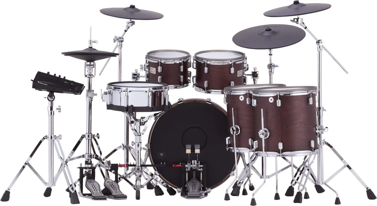 Six-piece V-Drums Acoustic Design kit with full-size wood shells and double-braced chrome stands
