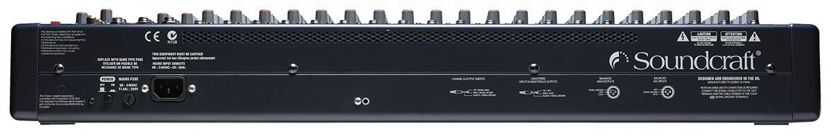 Sound quality is assured by Soundcraft’s now-legendary GB30 mic preamp and the use of professional condenser microphones is facilitated by the provision of globally switched +48V phantom power. New circuit designs have improved audio quality, and lowered the overall noise floor of the console and FX sections. An integral universal power supply negates the need for an external power module.