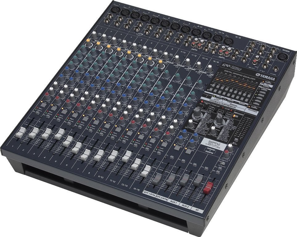 Live sound gear can be intimidating, but Yamaha’s new EMX5016CF Powered Mixer takes the confusion out of setting up a professional-sounding live music experience. This 16-channel stereo powered mixer, which includes two 500-watt amplifiers, is ideal for bands, churches and small rental applications.The EMX5016CF delivers the convenience of an integrated powered mixer with input capacity, flexible features, and solid sound that critical live sound applications demand. It is remarkably compact and portable for a live sound system with this much capability, but offers performance and reliability that will satisfy the discerning professional user either on the road or in installed applications.
